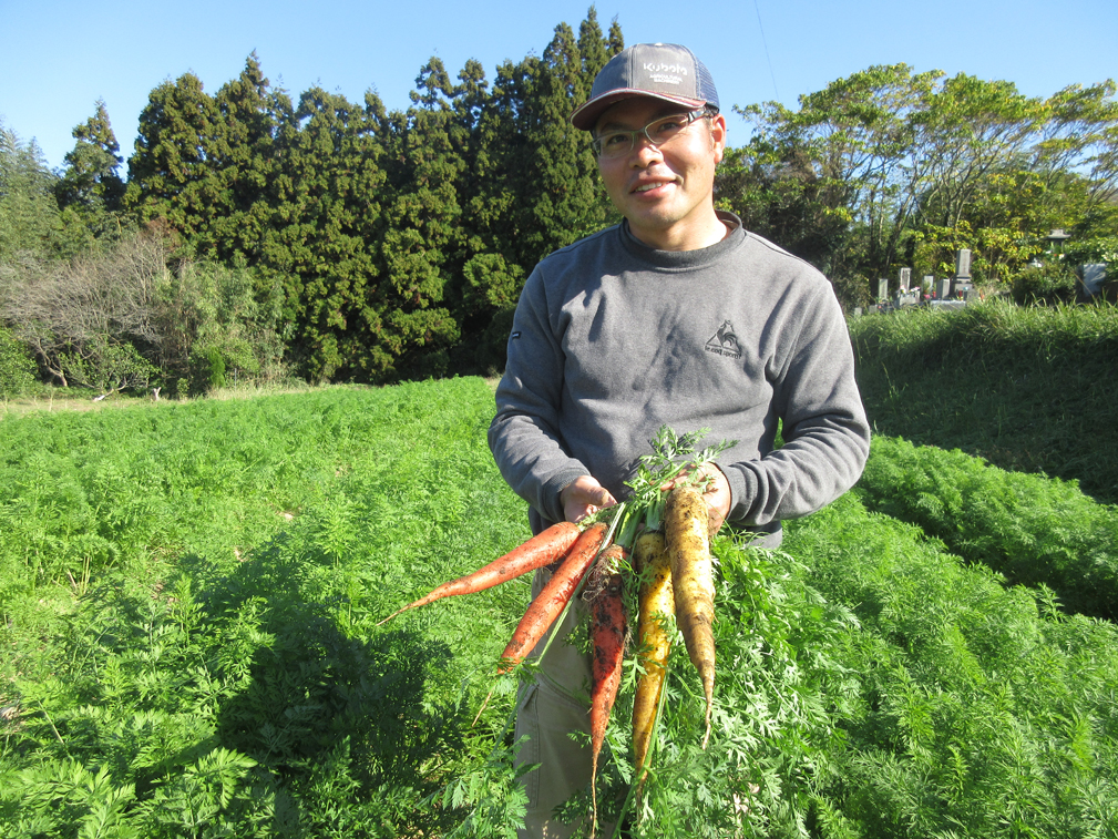 根物から葉物までいろいろなお野菜を作ってくださる有機農家さん。あまーい玉ねぎ、ほくほくのじゃがいも、人参、大根、サツマイモ、ほうれん草にブロッコリー。畑で収穫体験もさせてくださる頼れる農家さんです。